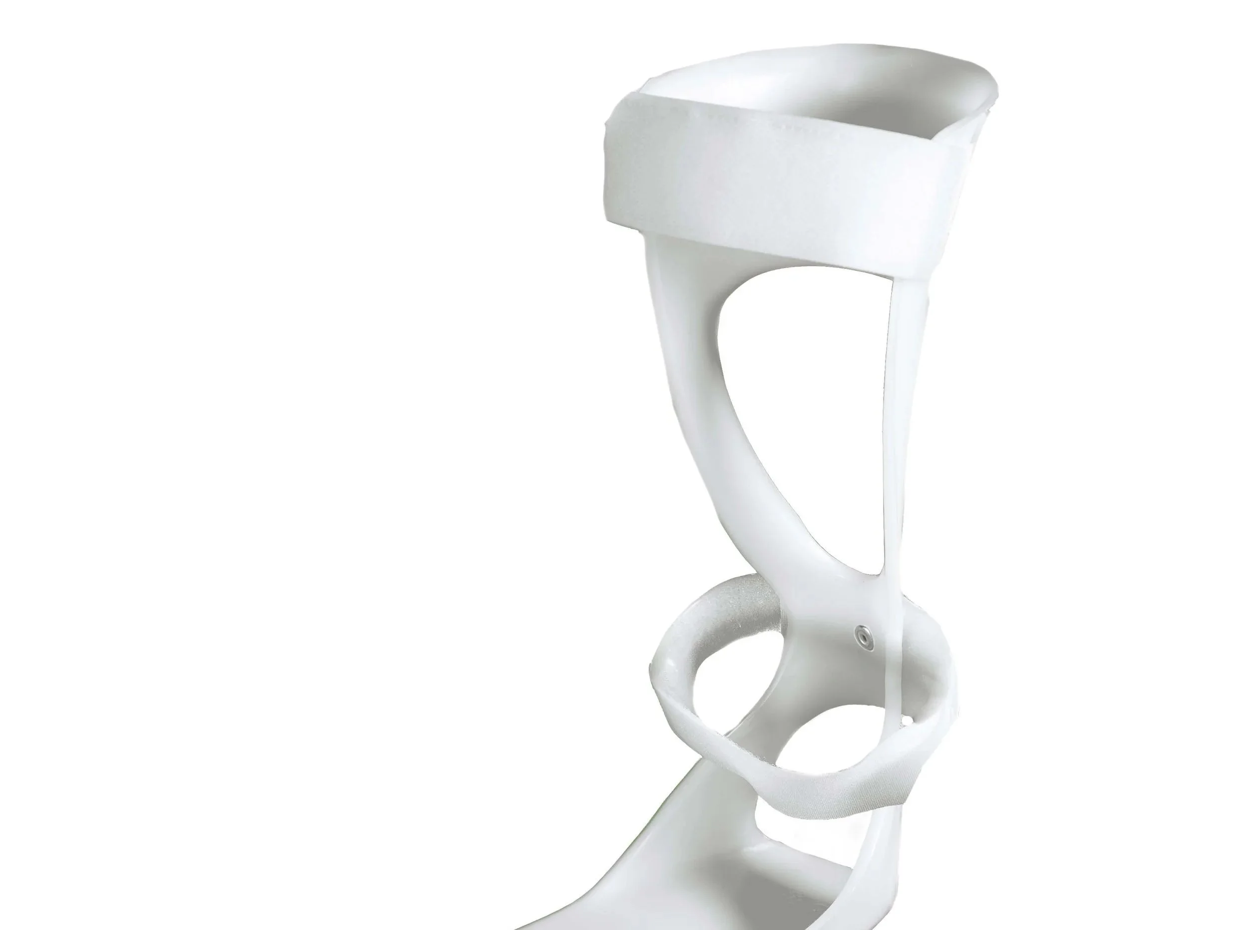 This brace provides static dorsi-flexion and lateral stability for the entirety of the foot/ankle complex. The low arch and open heel allow for a low-profile design that ensures the brace can fit inside of a shoe. It also features a moldable/trimmable footplate in order to better customize the brace to the patient.